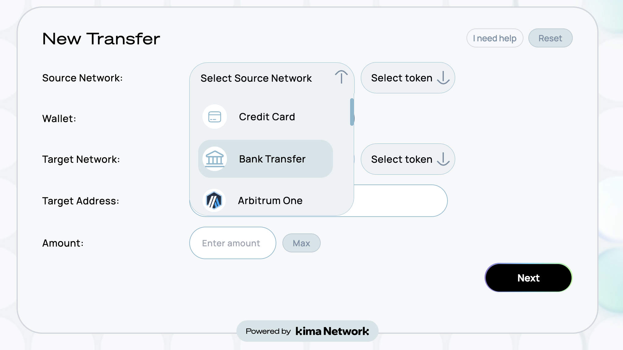 1. From the "Source Network" dropdown, select "Bank Transfer"
