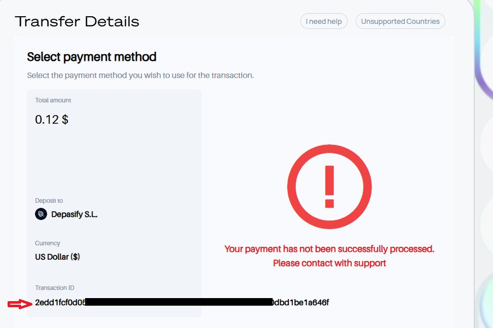 If your payment is not sucessful, you will see a notification with a transaction id and asking you to contact support. Plese copy the transaction id and create a support ticket on the Kima Discord.