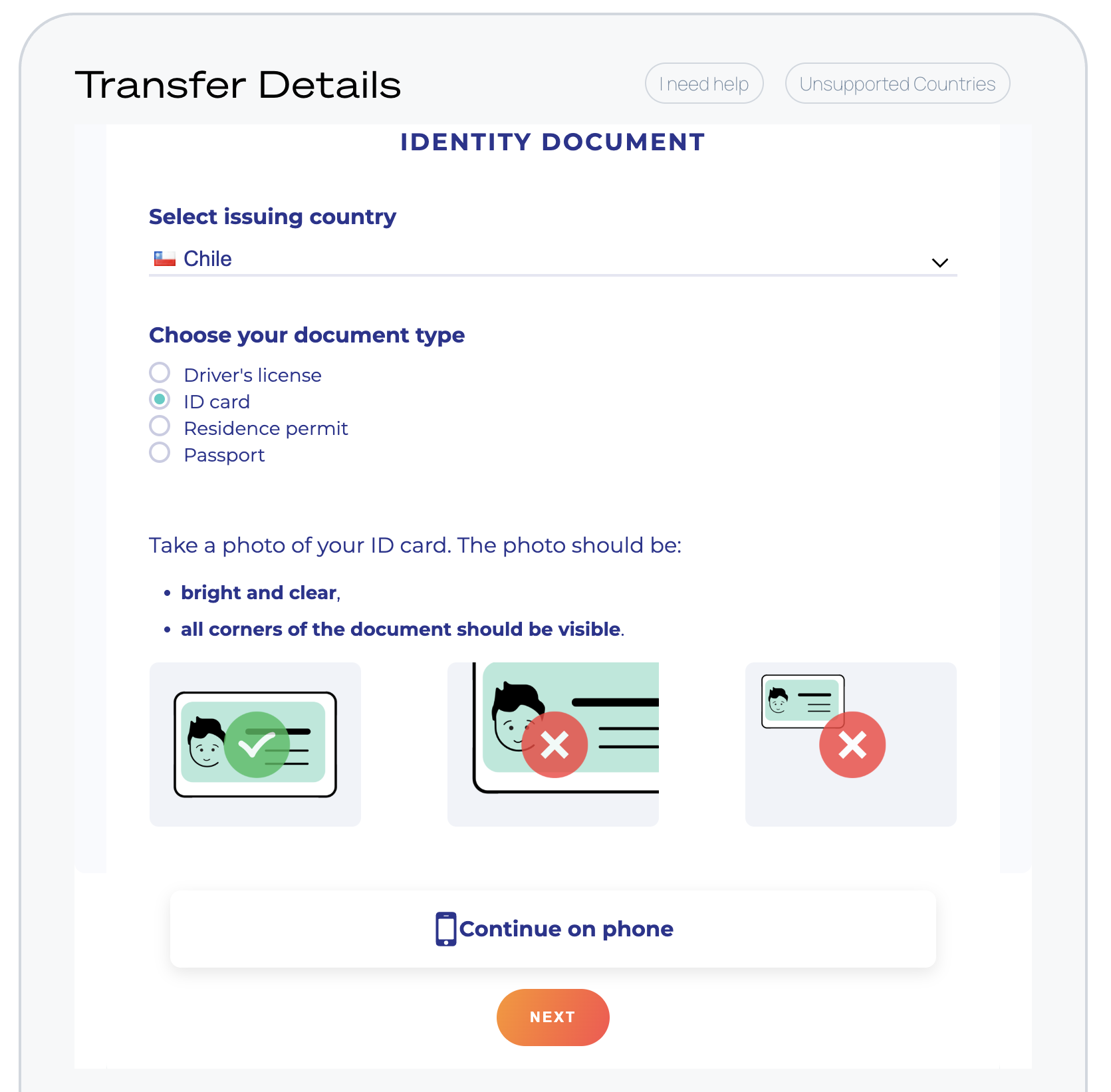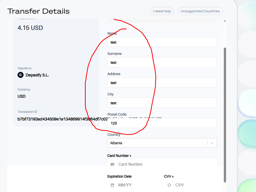 6. In order to send a transaction users will need to perform KYC. Select your country and complete all steps needed to reach the next screen and fill in your information and credit card details.
