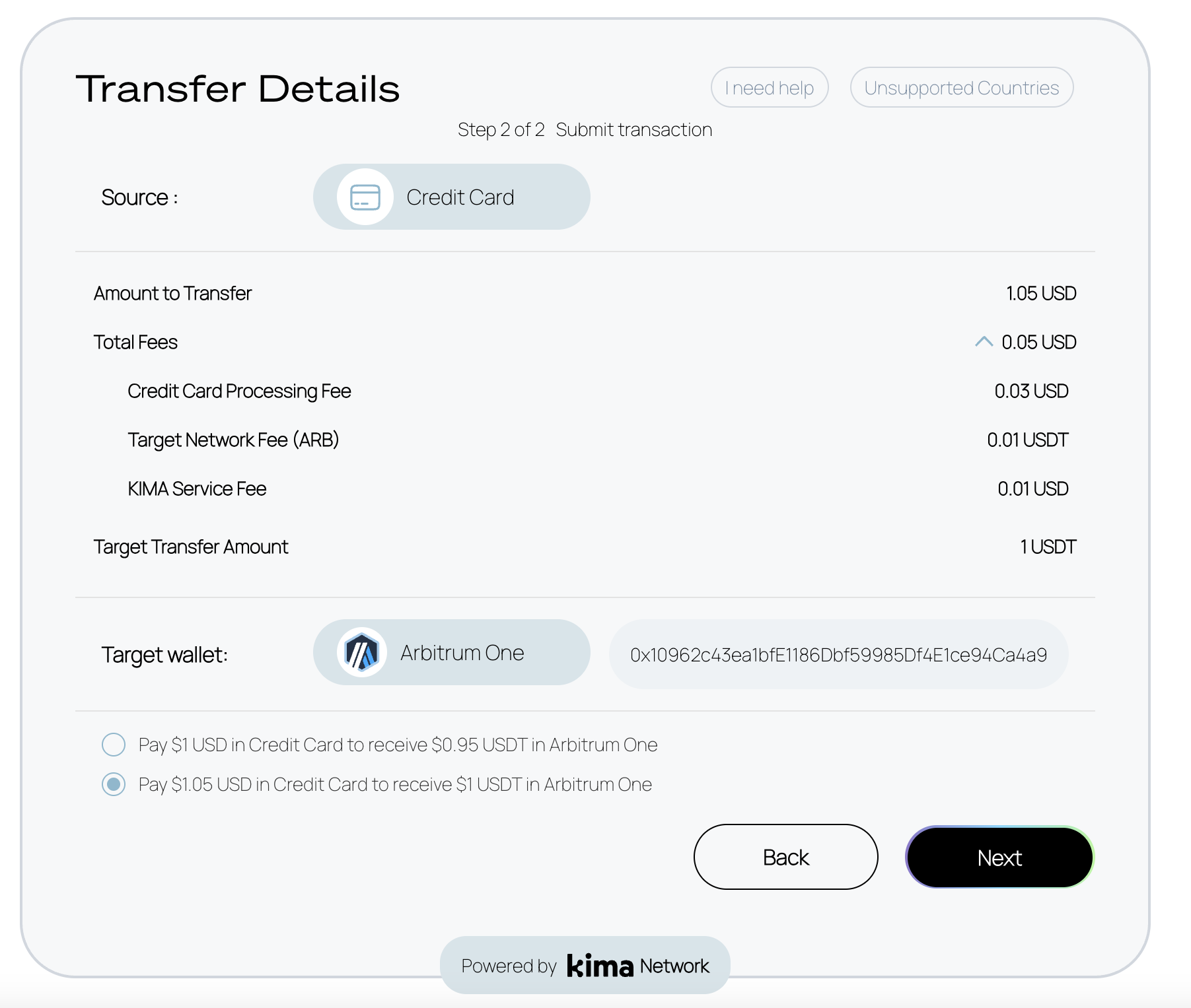 > ℹ️ Check the list of [unsupported Countries](https://docs.kima.network/kima-network/supported-fiat#unsupported-countries-credit-cards)