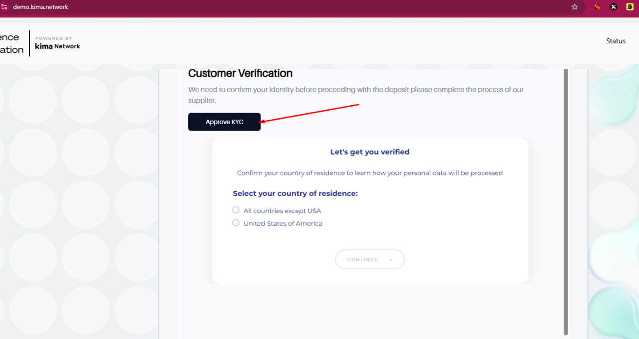 6. Please skip the KYC process by pressing the "Approve KYC" button. KYC will be required in the Mainnet version.