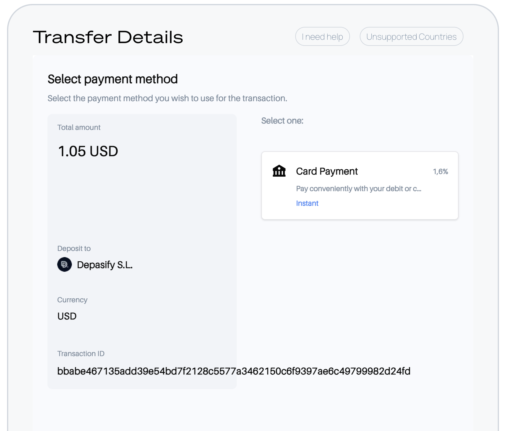 6. After the kyc process is complete, you'll be able to select your payment method. For now, the only available one is Credit Card: